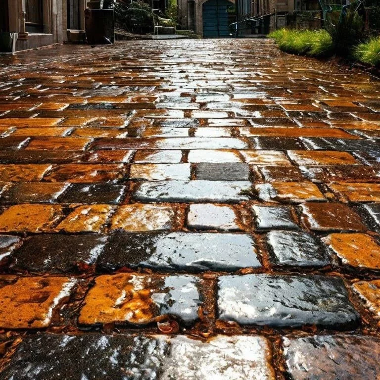 Доступная цена – еще одно преимущество материала. Но на этом плюсы заканчиваются. Из-за использования большого количества воды в процессе производства внутри изделий образуются поры, плитки быстрее разрушаются. А после дождя гладкая поверхность становится очень скользкой.