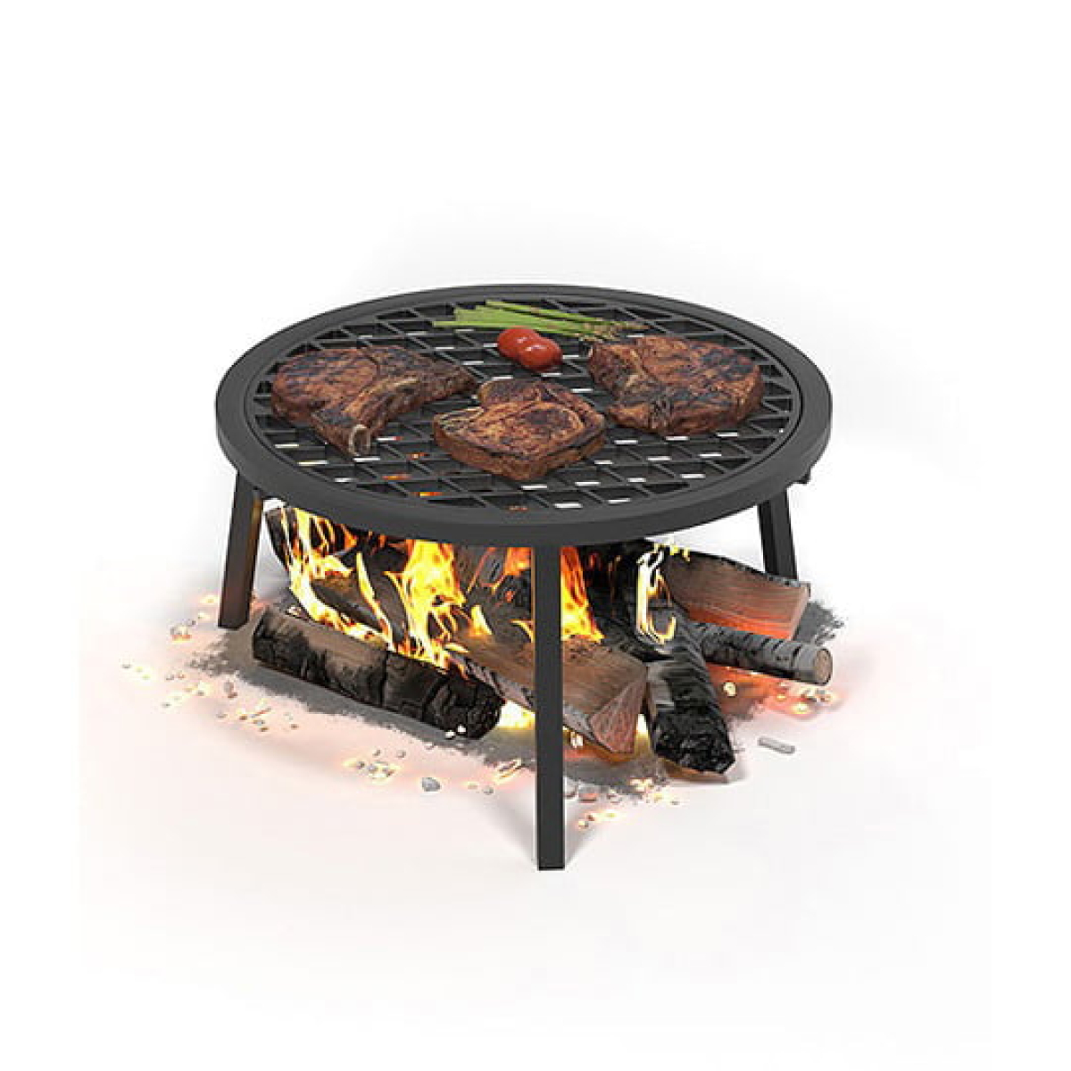 Установите подставку над костром, поместите на нее решетку – и наслаждайтесь приготовлением аппетитных стейков, рыбы, овощей с характерным рисунком гриля.